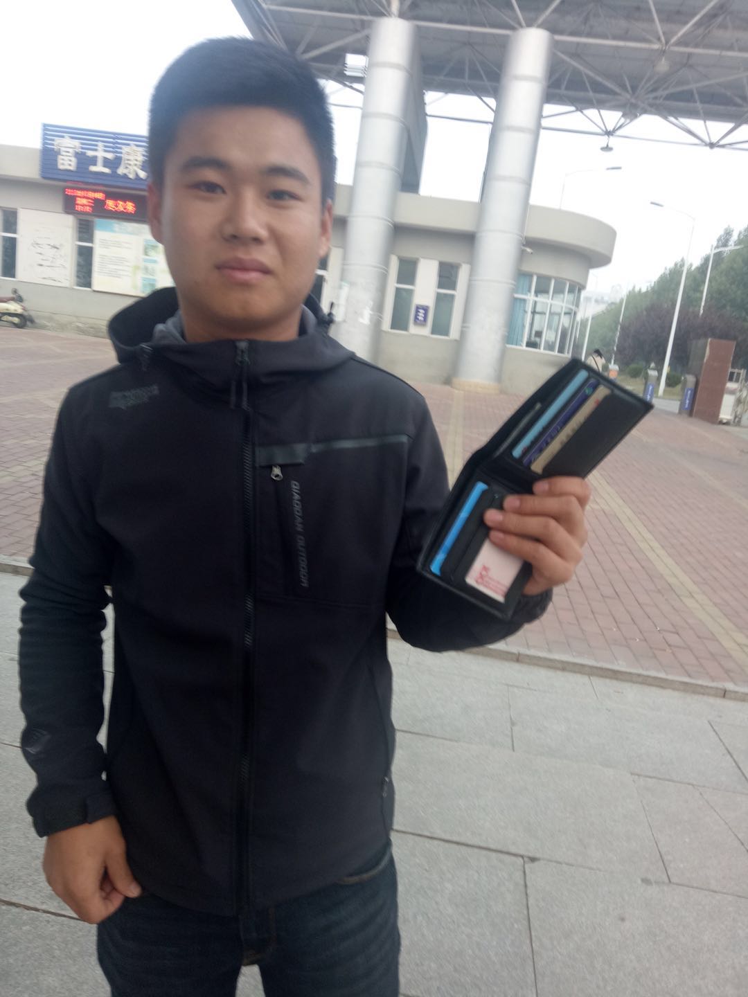 2018年10月16日,我公司員工賈聯(lián)化在富士康清潔時發(fā)現(xiàn)一個男士錢包,里面有加油卡、銀行卡以及一些現(xiàn)金,賈師傅連忙通知了部門主管,請她幫忙聯(lián)系失主。