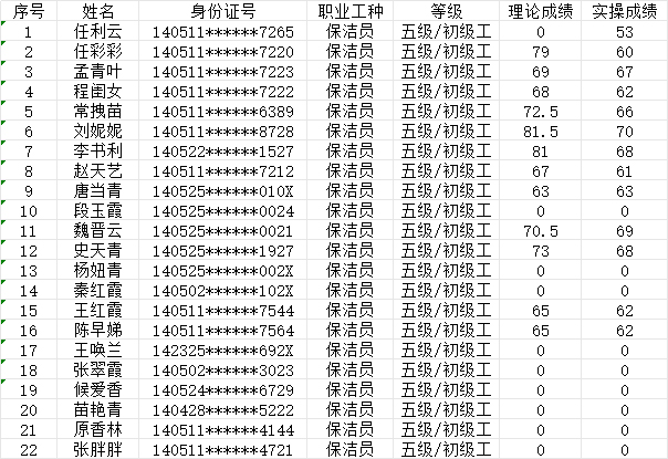 2024年9月15日第38批保潔員初級(jí)認(rèn)定人員成績(jī)公示