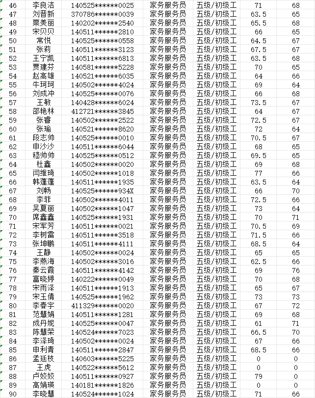 2024年9月28日第40批家政服務(wù)員初級認(rèn)定人員成績公示